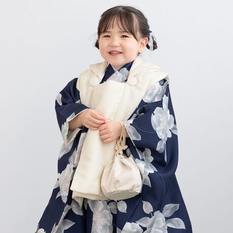 きもの館SOUBIENのプライベートブランド『floro by SOUBIEN』(フローロ)の女の子の七五三やお宮参りにおすすめな女児用の被布着物セットです。