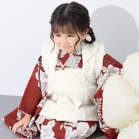 きもの館SOUBIENのプライベートブランド『floro by SOUBIEN』(フローロ)の女の子の七五三やお宮参りにおすすめな女児用の被布着物セットです。