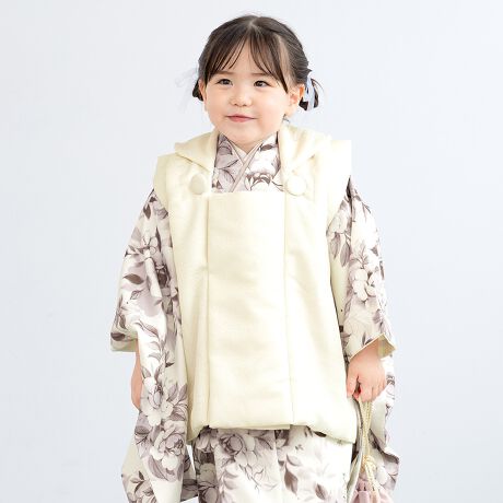 きもの館SOUBIENのプライベートブランド『floro by SOUBIEN』(フローロ)の女の子の七五三やお宮参りにおすすめな女児用の被布着物セットです。