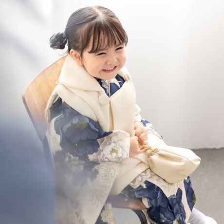 きもの館SOUBIENのプライベートブランド『floro by SOUBIEN』(フローロ)の女の子の七五三やお宮参りにおすすめな女児用の被布着物セットです。