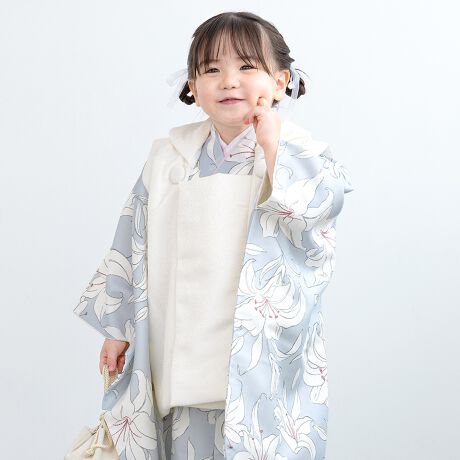 きもの館SOUBIENのプライベートブランド『floro by SOUBIEN』(フローロ)の女の子の七五三やお宮参りにおすすめな女児用の被布着物セットです。