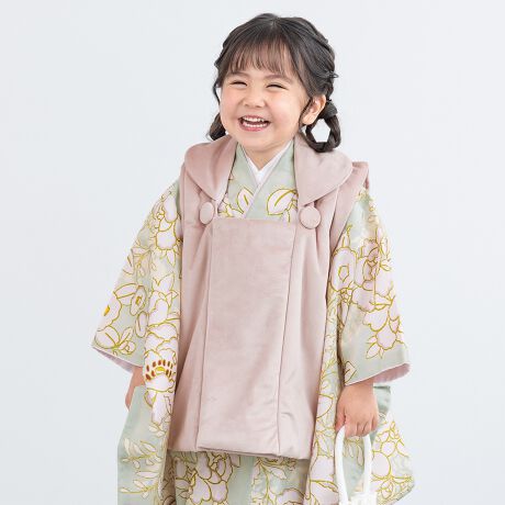 きもの館SOUBIENのプライベートブランド『floro by SOUBIEN』(フローロ)の女の子の七五三やお宮参りにおすすめな女児用の被布着物セットです。