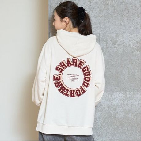 オーバーサイズでゆるっと着られる可愛らしいパーカです。