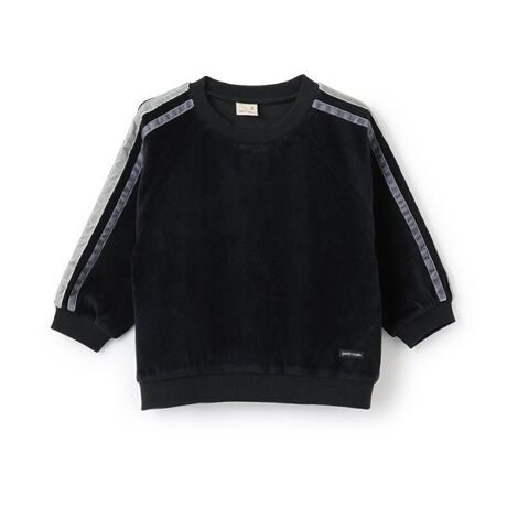 ベロア生地と肩から袖にかけてほどこされたバイカラーのダブルラインがおしゃれなプルオーバーです。