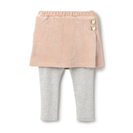 ハートのボタンがアクセントになったレギンスつきのスカートです。
