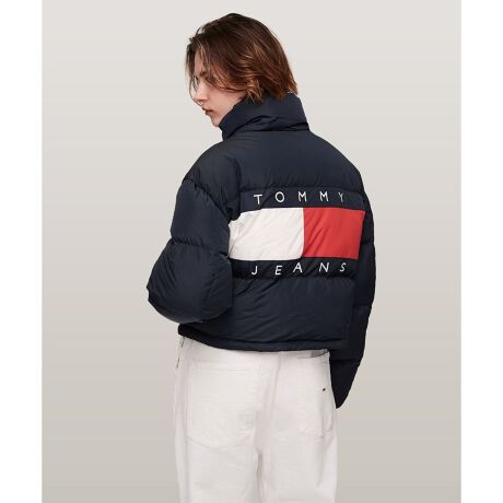 カラーブロックフラッグのバックグラフィックが主張するダウンジャケット。フロントは左胸にバッジロゴを配したシンプルなデザインに仕上げています。ボリュームのあるシルエットをクロップド丈でコンパクトにアップデート。トレンドのワイドボトムスに合わせてもバランスよく決まります。