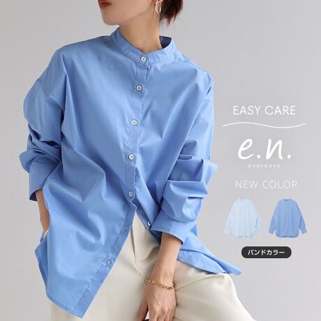 イージーケア バンドカラー シャツブ ラウス evernavy エバーネイビー