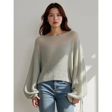 ざっくりとした透かし編みが抜け感を演出するニット。ふんわりとしたボリュームスリーブに、袖口のリボンがアクセントをプラスしてくれます。さまざまなボトムスと合わせやすく、ワンピースの上にレイヤードしたスタイリングもおすすめです。