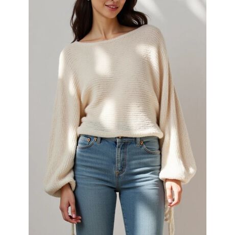 ざっくりとした透かし編みが抜け感を演出するニット。ふんわりとしたボリュームスリーブに、袖口のリボンがアクセントをプラスしてくれます。さまざまなボトムスと合わせやすく、ワンピースの上にレイヤードしたスタイリングもおすすめです。