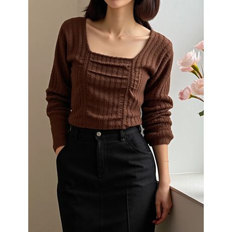 フロントに施したギャザーデザインが目を惹くトップス。すっきりと開いたスクエアネックが、デコルテをきれいに魅せてくれます。コンパクトな丈感なので、ハイウエストのパンツやボリュームのあるスカートともバランス良く合わせられるアイテムです。