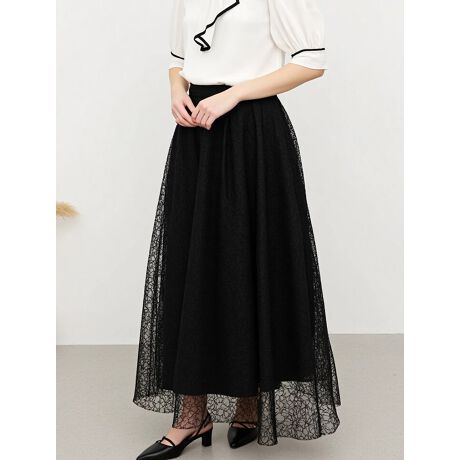 繊細なレースがエレガントで上品な印象のスカート。ほどよい透け感と、裾に向かって広がるフレアシルエットが女性らしさを演出します。合わせるトップスやシューズ次第で、デイリーからオケージョンシーンまで幅広く活躍するアイテムです。
