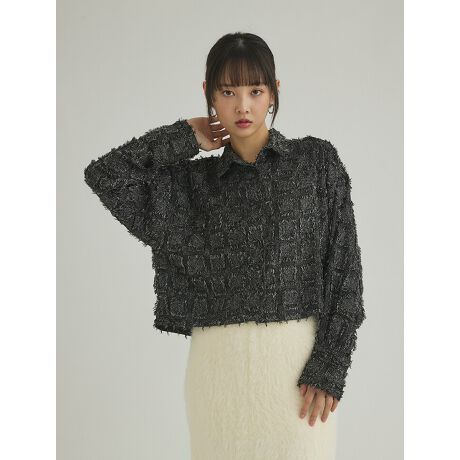 立体感のあるフリンジチェックデザインが目を惹くジャケット