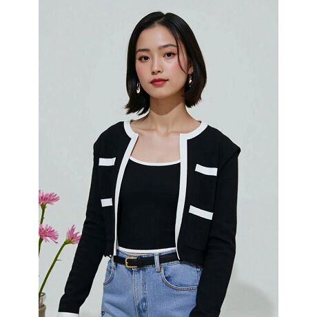 バイカラーデザインが目を惹くキャミ付きカーディガン