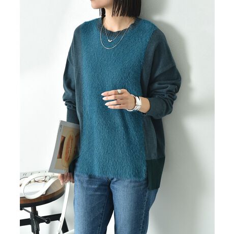 センターを今季トレンドのフェザーで切り替えたデザインが人気のニットプルオーバー。カラートーンを合わせているから統一感のあるルックスに仕上がっています。着まわし力も高く、デイリーにヘビロテしてくれる1枚。