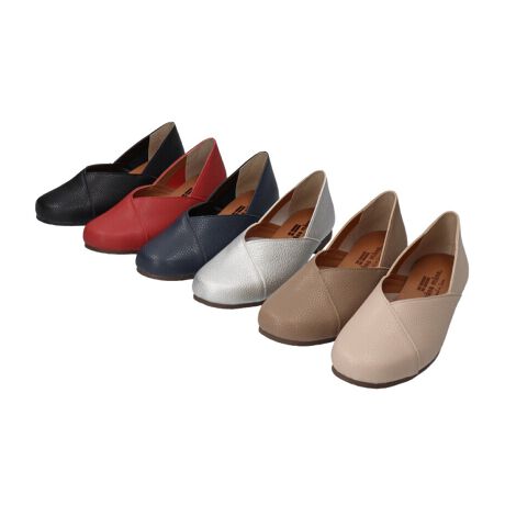 人工皮革で履き心地も柔らかく、シボ感が高見えするデザインに。