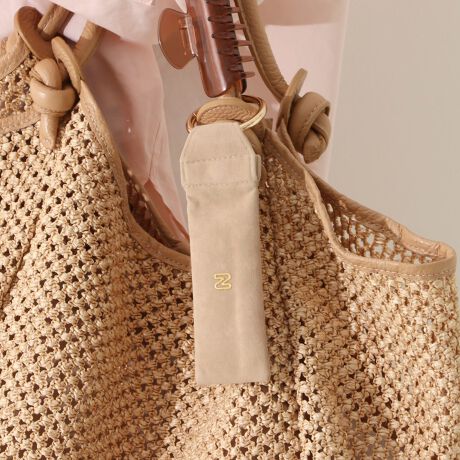 ・フェイクスェードの袋チャーム付きで、袋は細みリップが入る大きさにしています。