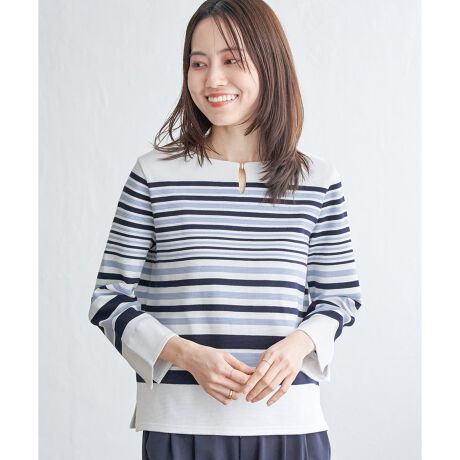 Aラインスカートやプリーツスカートと合わせれば、ボーダー柄が上品でフェミニンな印象になります。