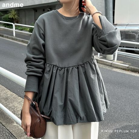 裏起毛 ペプラム スウェット トップス