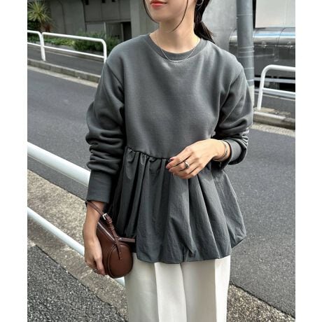 裏起毛 ペプラム スウェット トップス