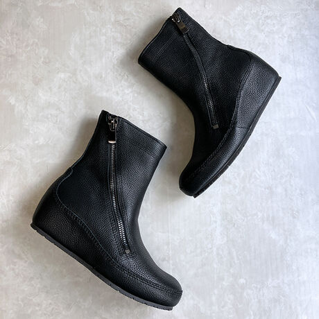 シボ入りレザー使用したベーシックでシンプルなショートブーツです。