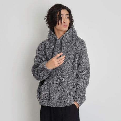 毛足の長いボアフリース素材を使用し、あたたかさと軽い着心地が特徴のプルパーカー。