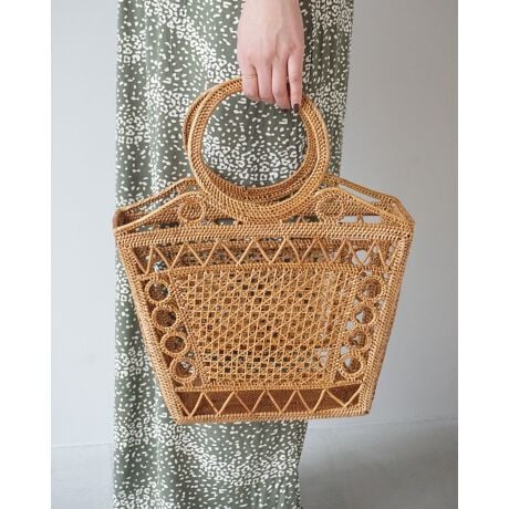 洗練されたデザインが印象的な天然草木のハンドバッグ。