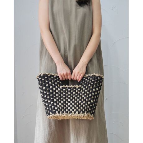 ブラックと天然素材のナチュラルなカラーで格子柄に編み込まれた大きめのハンドバッグです。