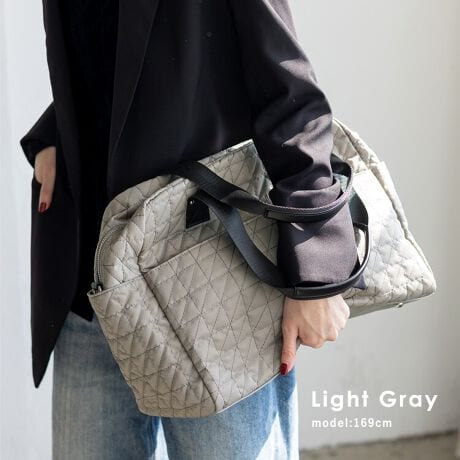 大容量のキルティングボストンバッグ。