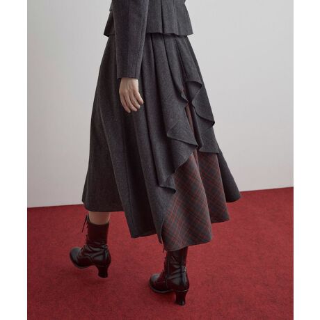 ラッフル下の布にはチェック柄を用いて存在感のある印象に仕上げ、写真映えすること間違いなしのスカート◎