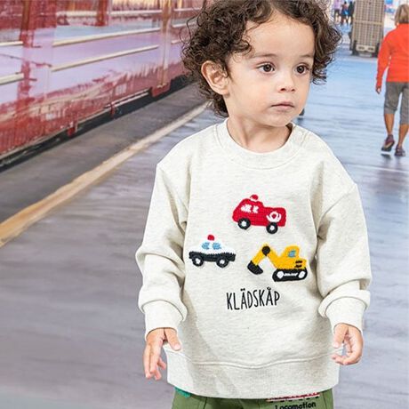 立体感のある働く車の飾りが可愛らしいトレーナーです。