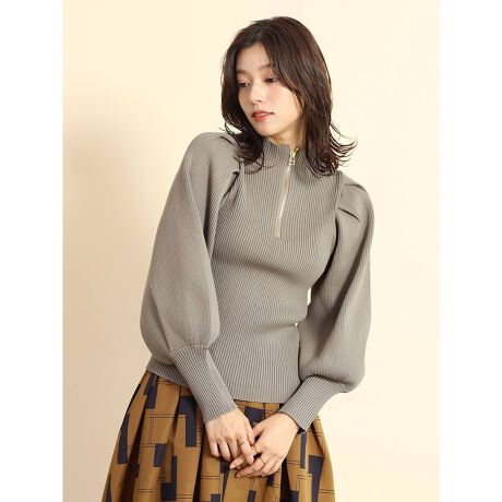 ボリューム袖の甘さもありながら、ゴールドのジップデザインで程よいカジュアル感をプラス。