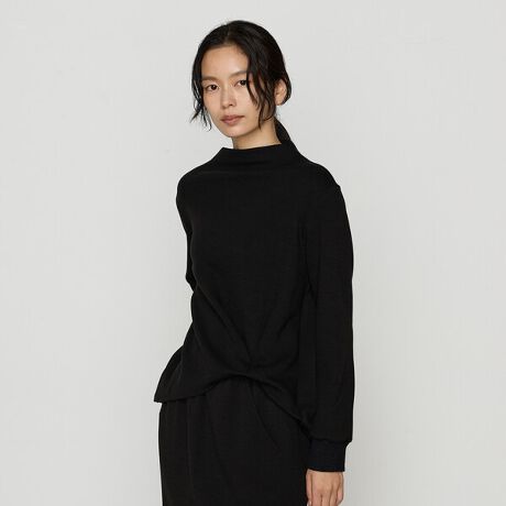 裾をボトムにインしたようなタックが柔らかい印象のふんわりプルオーバーです。