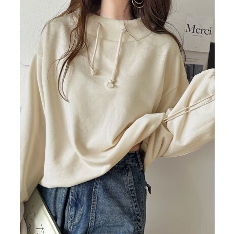 大人カジュアルをアップデート。フェイクフードスタンドネック裏毛プルオーバー