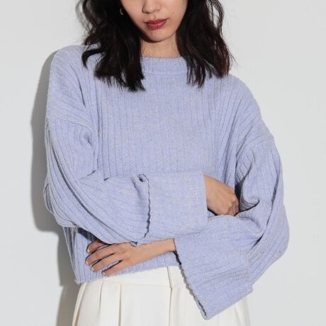 小さなスパンコールが散りばめられたワイドリブのクルーネックニット。