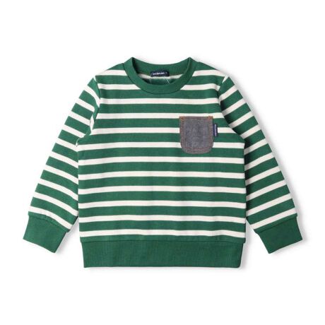 暖か裏起毛素材のトレーナー、スウェット。シンプルなボーダーデザインで着やすい!胸のポケットもポイント!【アイテム】トップス シンプル カジュアル お洒落 オシャレ かわいい 可愛い 普段着 デイリーウェア お出かけ着 お外着 お外遊び着 子ども こども 男児 男の子 ガールズ キッズ ベビーサイズ トドラーサイズ 幼稚園 保育園 小学校 通園 通学 小学生 2024年秋冬物新作 丸高衣料 ムージョンジョン グリーン 緑色 紺色 ネイビー 暖かい あったかい