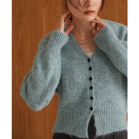 ブラックのクルミボタンが印象的なショートカーディガン!フェミニンなシャギー感で女性らしい雰囲気を作り出してくれます。スタイルアップが叶うショート丈と首元をすっきりシャープに魅せるVネックは可愛らしい雰囲気の中に抜け感を演出。広めにとった裾リブはウエストの華奢見えも叶えてくれます。暖かみのある見た目でシーズンムードを加速させる1枚です。