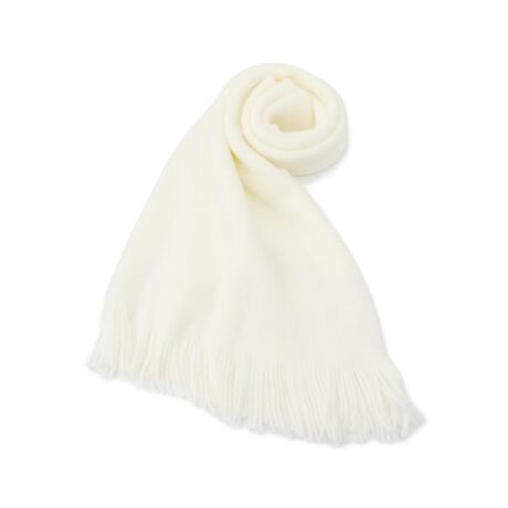 ふんわりとしたやわらかな風合いのラッセルストールです。サイドのフサがアクセントになったデザイン。