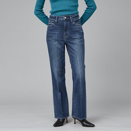 センタープレスがあり、綺麗カジュアルな印象を与えてくれるフレアデニムパンツ。
