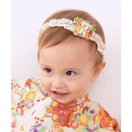 つまみ細工 3つ花 ベビー ヘアアクセサリー [2タイプ クリップ/ヘアバンド]