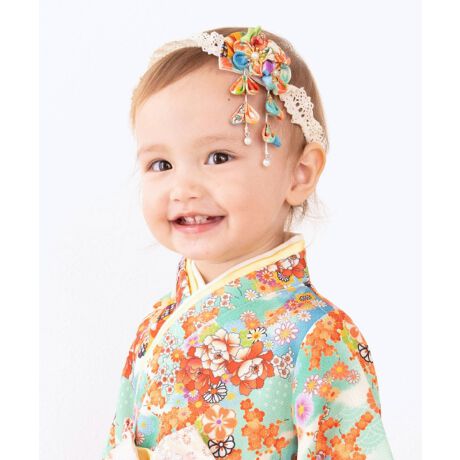 藤下がり 扇型 3つ花 ベビーヘアアクセサリー [2タイプ クリップ/ヘアバンド ]