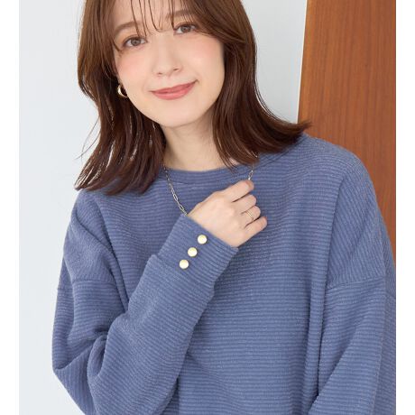 あったか裏起毛袖口ボタンニットソートップス