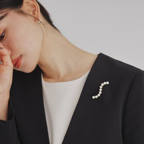 優雅なカーブを描くデザインに、並んだフェイクパールがアクセントとなる洗練されたブローチ。