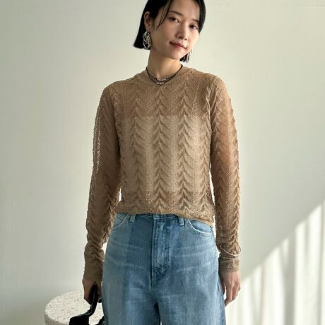 ハイゲージ透かし柄編みニット