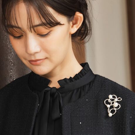 シンプルでフォーマルの装いにもぴったりなブローチ。