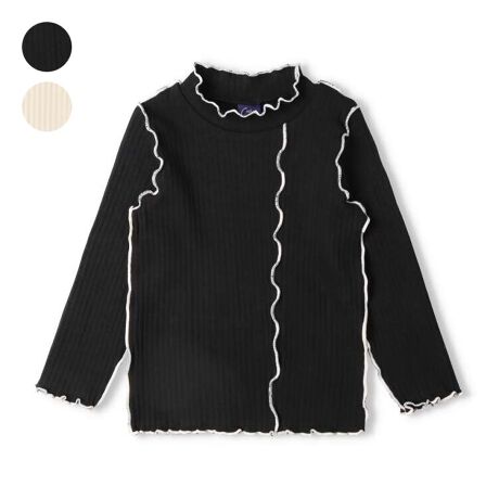 ジャンスカやワンピースのインナーに大活躍!縦縞模様の凹凸感があり、伸縮性、ストレッチ性があって伸びの良いテレコ素材。メロウ配色デザインのハイネックの長袖Tシャツ。1枚でももちろん、重ね着でも可愛く着られるアイテム。【アイテム】トップス シンプル ガーリー フェミニン カジュアル お洒落 オシャレ かわいい 可愛い 普段着 デイリーウェア お出かけ着 お外着 お外遊び着 子ども こども 女児 女の子 ガールズ キッズ ベビーサイズ トドラーサイズ 幼稚園 保育園 小学校 通園 通学 小学生 2024年秋冬物新作 丸高衣料 ロングスリーブ 長袖 ブラック 黒色 オフホワイト 白色 クレセント