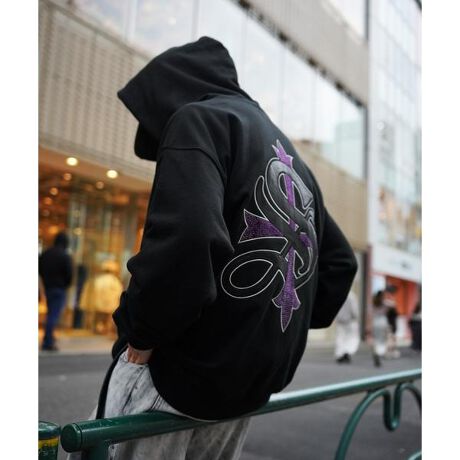 SUPPLIERのシグネチャーデザインの一つである"CROSS LOGO"をバックに飾ったジップアップパーカー。