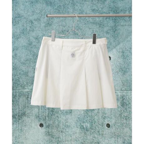 女性らしいゴルフスタイルが様になる台形プリーツスカート。さりげなく効かせたフロントの織ネームや、後ろ裾のロゴなど遊びゴコロを感じられるデザイン。ビギナーにも取り入れやすく穿くだけで様になるので、1枚備えておくと重宝します。