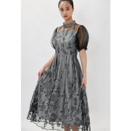 エレガントな刺繍レースが魅力を引き立てるオケージョンドレス。