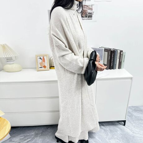 ラップカーディガンがストンと足元までIラインをつくり、全体をスッキリとまとめてくれます。<br>