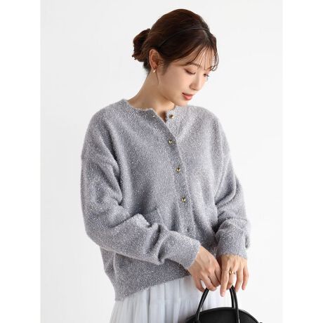 輝くラメデザインがコーディネート全体の旬度をぐっと高めてくれるニットカーディガン。